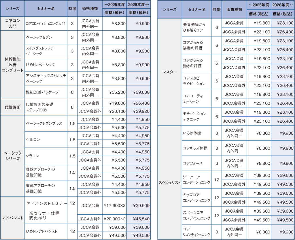 JCCAでは2026年4月よりセミナー価格の改定を実施させていただくこととなりました。