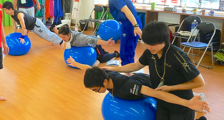アスリートのパフォーマンスアップ、怪我の予防となるエクササイズ指導を習得することで競技選手のサポートを行う。